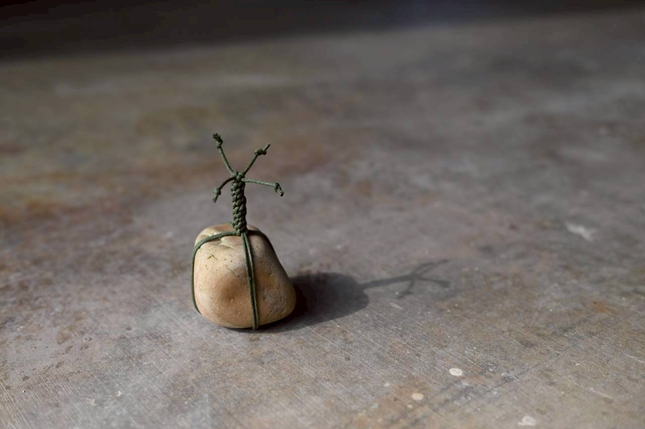 関守石(せきもりいし)とは、茶庭や露地の飛び石や分かれ道に据えられる小さな石で、棕櫚縄(しゅろなわ)で十文字に結ばれています。